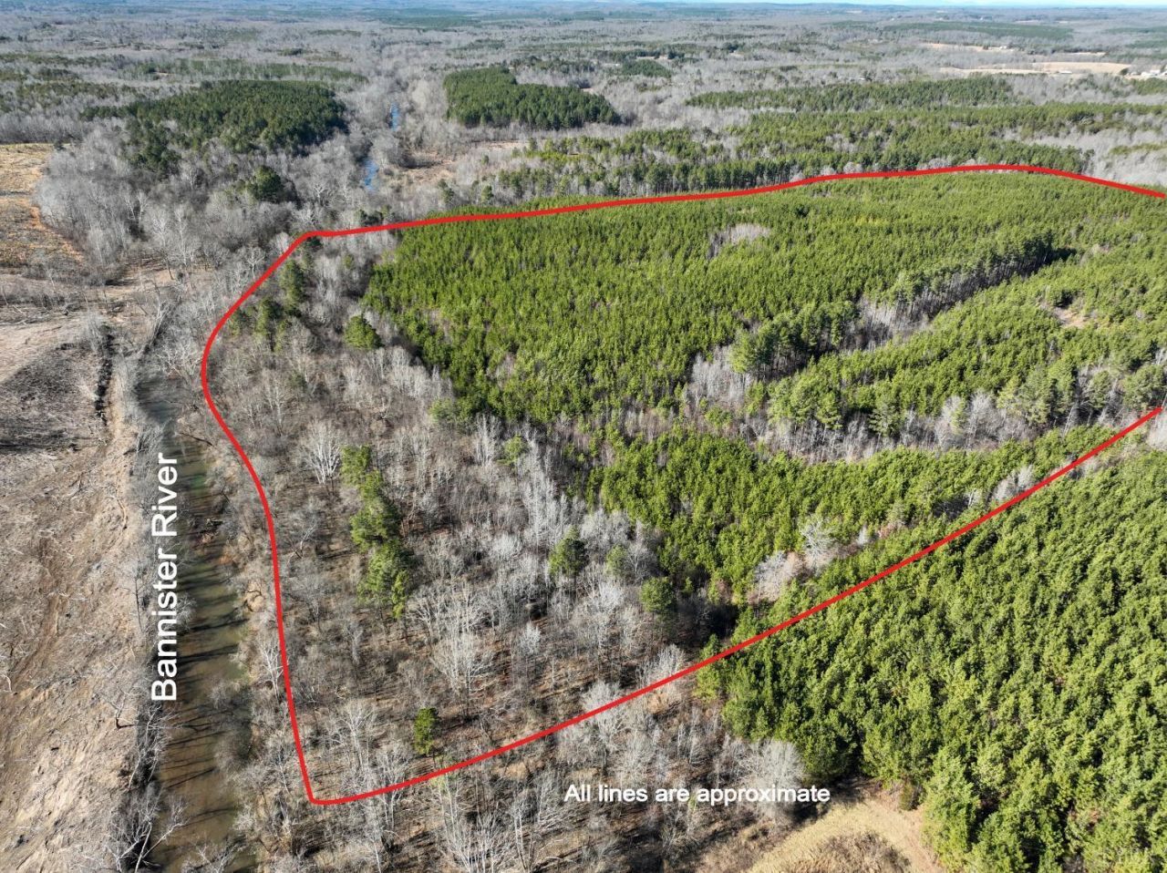 Wooded 94 acres with over 1,970' frontage on the Bannister River in Halifax County. Long river & creek bottoms are nicely wooded with hardwood forest while the bulk is 15 yr old planted pine. Tremendous timber investment while you enjoy all the hunting and recreational fruits of Bannister River. Set up a campsite on the river and trails throughout to enjoy this property year round. Or build your off grid dream property to get away from it all. All this and still only 30 minutes from shopping/dining/hospitals in South Boston. 4185 Chestnut Rd. is adjacent to Rose Ln, this is for GPS purposes only. Owner Financing possible by Land Sale Agreement.