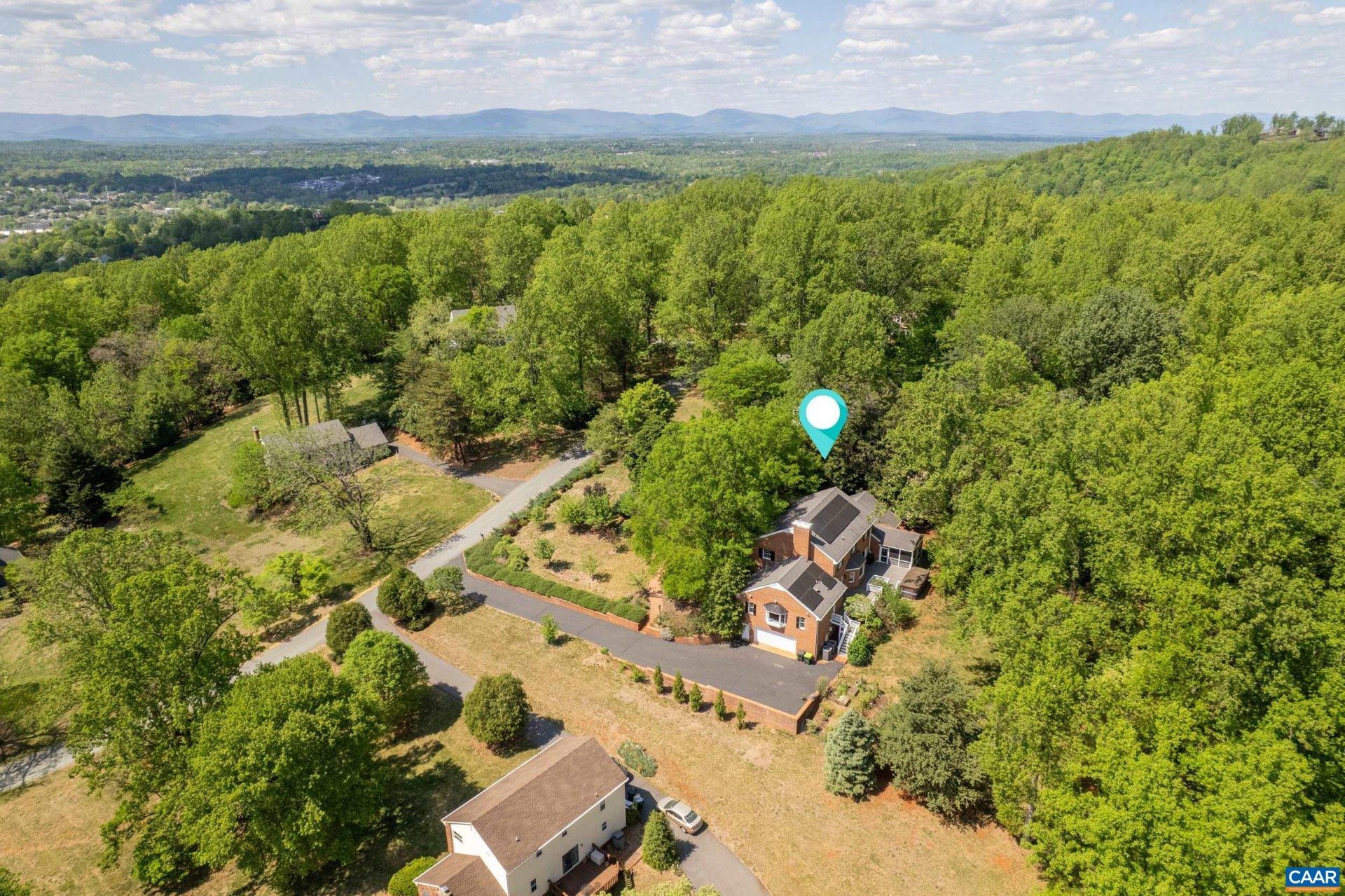Beautiful, private brick 4-bedroom, 3.5-bath home set on 1.15 wooded acres in the highly desirable Ashcroft neighborhood. This timeless, solid brick home offers exceptional privacy and space, complemented by numerous updates including a renovated kitchen, new HVAC system, solar panels, new water heater, and a roof replaced in 2017. Outdoor living shines with a 13x13 screened porch, expansive back deck, mature landscaping, and established fruit and nut trees, all with scenic mountain views. Inside, gleaming hardwood floors flow throughout, featuring two primary suites, a dedicated office, & an oversized family room ideal for entertaining. Stay cozy all winter with a gas brick fireplace in the kitchen and a wood-burning stove in the FR. The upstairs primary suite boasts a spacious walk-in dressing room plus & additional walk-in closet. 2-car garage and ample driveway provide convenience and storage. Enjoy Ashcrofts amenities incl. a clubhouse, pool, tennis courts, soccer field, basketball court, playground, and walking trails. Minutes from Pantops, I-64, Route 250, Martha Jefferson Hospital, & only 15 minutes to downtown and UVA. An exceptional value for a spacious home on a private lot in an established, sought-after community.
