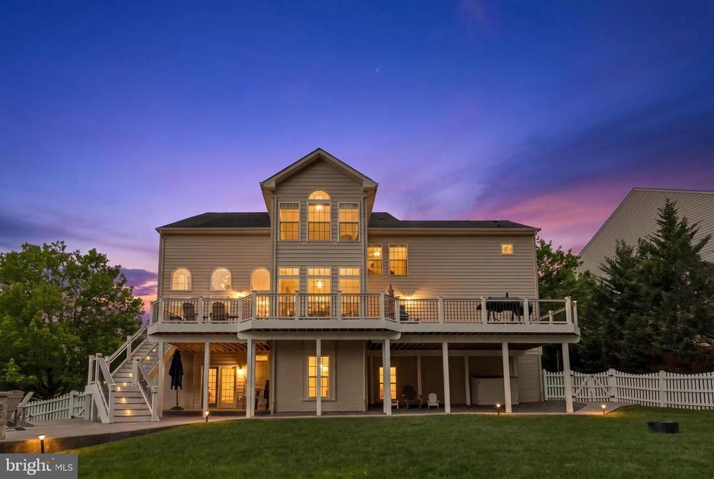 0.30 Acres| Backs to Woods| Over 5,000 finished square feet | Rare 3-level extension | Private wooded backdrop in Courtland Rural Village HVAC Main & Lower Levels (2025), upper level (2022); Kitchen flooring (2026). This Sinclair model delivers scale, presence, and lifestyle in one of Leesburg’s most desirable settings. Situated on a 0.30-acre fenced lot backing to a mature tree line, the home offers a level of privacy that feels tucked away—yet remains moments from everything. A dramatic two-story foyer sets the tone. The main level balances elegance and function with formal living and dining rooms, and a private home office with French doors. The rare three-level extension expands the footprint, creating a sun-filled sunroom and an oversized breakfast area that seamlessly connect to the gourmet kitchen. Designed for gathering, the kitchen features a large granite island, stainless steel appliances, butler’s pantry, and walk-in pantry. The two-story family room is anchored by a striking floor-to-ceiling stone gas fireplace. Upstairs, the owner’s suite is expansive and refined, complete with a sitting room, two walk-in closets, and a spa-style bath. A princess suite offers its own private bath and walk-in closet, while two additional bedrooms share a well-appointed Jack-and-Jill bath. The fully finished walk-out lower level is built for entertaining. A dedicated media room with a projector, screen, and chair conveys. The recreation space includes a pool table, shuffleboard, custom bar, and bar stools—all conveying—creating a true social hub. A private bedroom, full bath, and large storage area add flexibility. Outdoor living is exceptional. A composite wraparound deck spans the rear of the home, offering multiple zones for dining, lounging, and entertaining while overlooking the tree-lined yard. Steps lead to a patio with a curved stone seating wall and built-in firepit—designed for evenings that linger. The fully fenced yard is level, usable, and framed by natural greenery. Deck lighting enhances the ambiance after sunset. Located near Banshee Reeks Nature Preserve, Brambleton Town Center, and historic downtown Leesburg, with convenient access to Route 15, Route 7, and the Dulles Greenway. Community amenities include a pool, clubhouse, tot lot, and scenic walking trails.