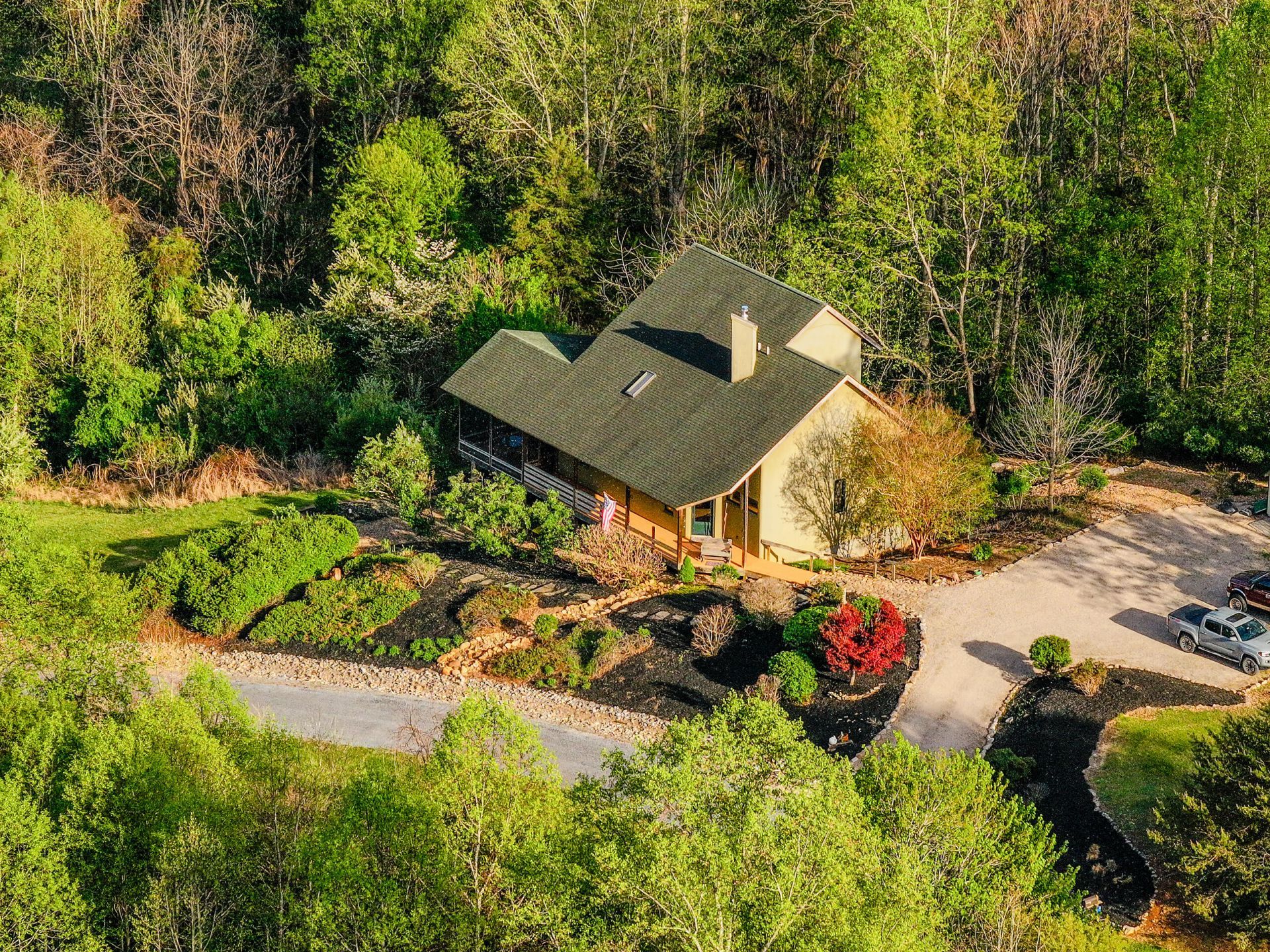 Tucked into a private hillside setting with direct access to the Maury River, this architecturally distinctive Lee Merrill-designed residence offers a rare fusion of contemporary design and natural beauty across 5.76 acres, including two contiguous tax parcels. Designed with intention and artistic detail throughout, the home opens to warm, inviting living spaces with tall ceilings, maple hardwood flooring, and carefully framed sightlines to the surrounding mountains and river valley. Expansive windows bring the outdoors in, creating a seamless connection to nature in every season. Unique architectural elements and handcrafted details create visual interest throughout, reflecting the creativity and craftsmanship.