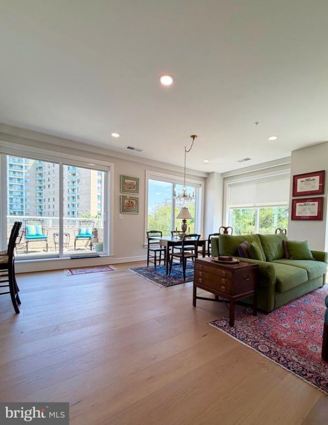 Just 3 Years New and Move-In Ready, with Potomac River Views. This impeccably maintained condo has been lightly lived in as a second home by its current owner. Featuring a truly exceptional layout, this 2-bedroom, 2-bath residence offers a one-of-a-kind floor plan in the premier building at Towngate North. The most sought-after building in the community offers the full array of luxury amenities and unmatched convenience. This light-filled home is defined by its 6-foot-tall windows and two sets of double doors that open to a spacious private balcony, seamlessly blending indoor and outdoor living while showcasing the water views. Inside, Swedish Croft Oak natural 7” wide-plank hardwoods run throughout, complemented by Mecho shades that reduce heat and glare while enhancing comfort and efficiency. The chef’s kitchen is a standout, featuring Micro Shaker cabinetry, Calacatta Leon quartz countertops and full backsplash, and a suite of high-end, state-of-the-art KitchenAid stainless steel appliances. Highlights include a French door refrigerator with water dispenser and double-drawer bottom freezer, electric cooktop, wall oven with convection cooking, microwave with convection, crisp, and steam functions, and a dishwasher. Even the kitchen features water views and is perfectly designed for both everyday living and entertaining. The primary suite offers a serene retreat with a custom-designed oversized closet, a private office nook, and a spa-like bath finished with White Glacier matte tile and Stellar White quartz countertops. The second bedroom and full bath are equally well-appointed, providing comfort and flexibility for guests or an additional workspace. Extra features include a full-size washer and dryer, a furnace humidifier for year-round comfort, and one of the most coveted combinations in the building: three premium garage parking spaces located close to the elevator and one of the few air-conditioned (climate-controlled) storage units. As part of the premier building at Towngate North, residents enjoy top-tier amenities including a concierge-attended lobby, rooftop terrace with grills and panoramic views of the DC skyline, fitness studio with yoga room, clubroom, conference room, bike storage and repair room, and a dog spa. Ideally located just one stoplight to DC, a few blocks from Old Town Alexandria, with direct access to the Mount Vernon Trail, and close to parks, restaurants, and shops. This condo offers the perfect blend of luxury, lifestyle, and location. A truly rare opportunity to own one of the finest condos in Towngate North. ***Check back Friday for Professional Photos***
